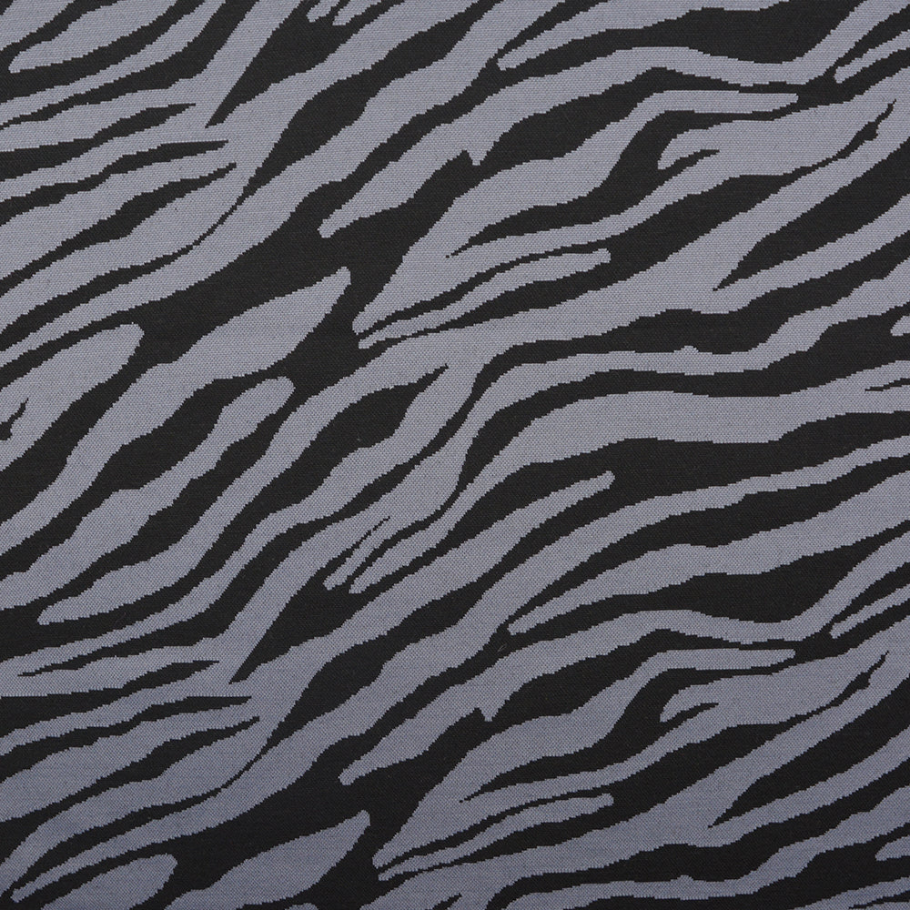 A mid-weight jacquard knit in a black and grey Zebra print.