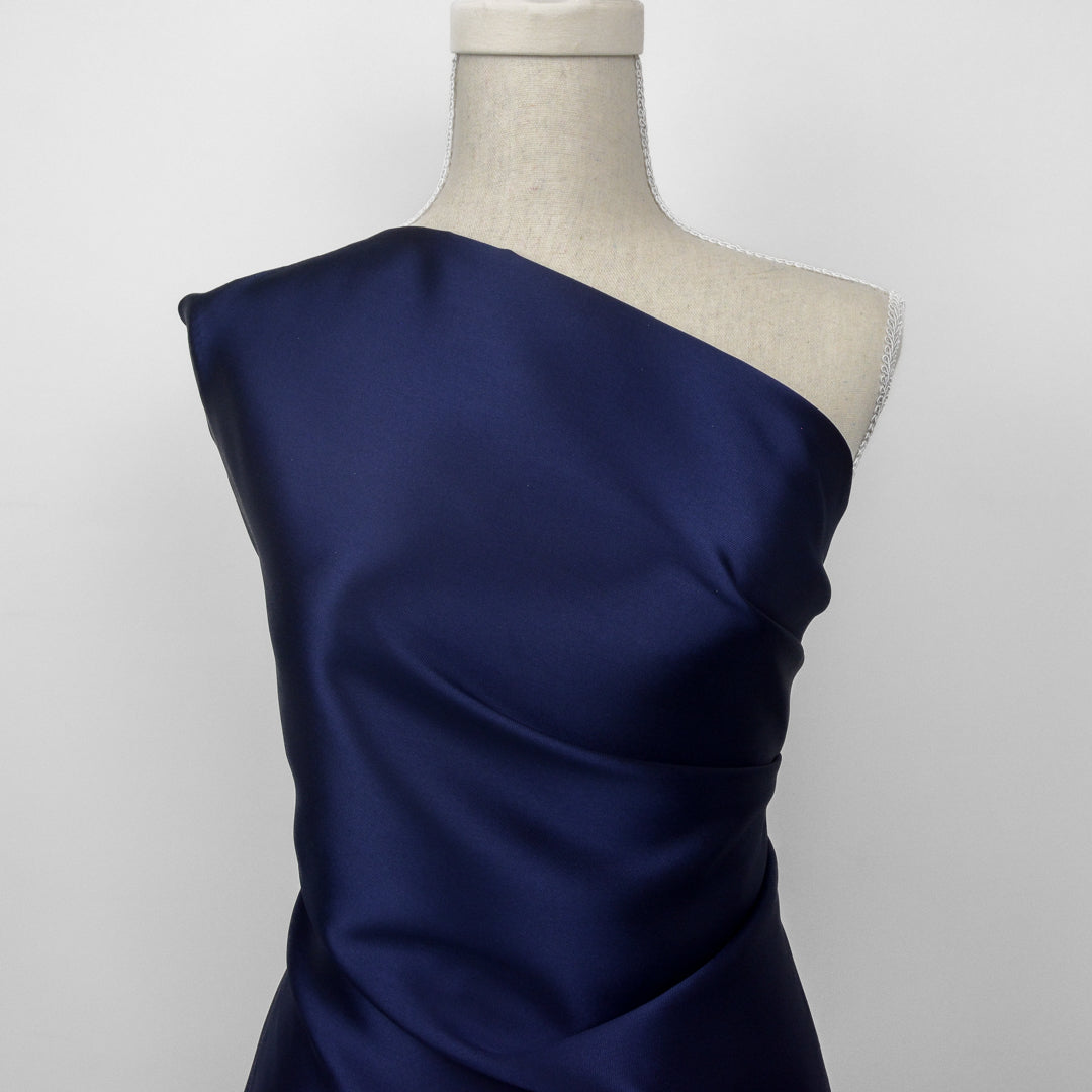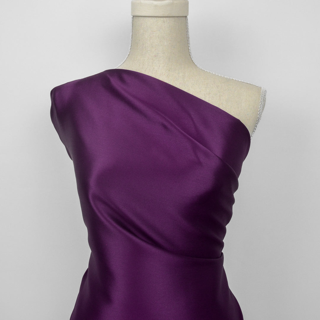 Lovely, lustrous satin with fine twill weave, perfect for evening wear and vibrant statement garments. Best described as a light weight Mikado.