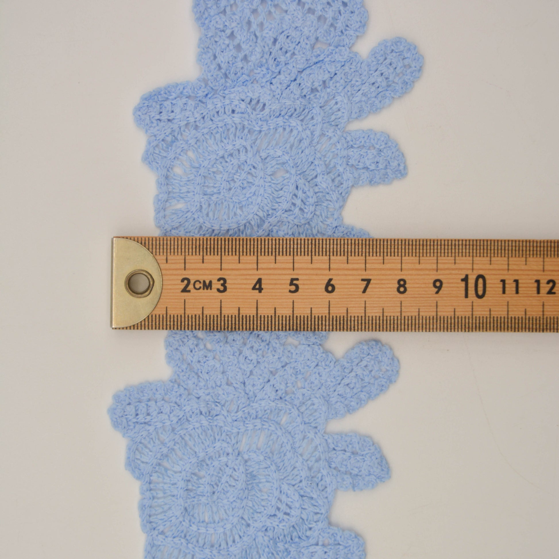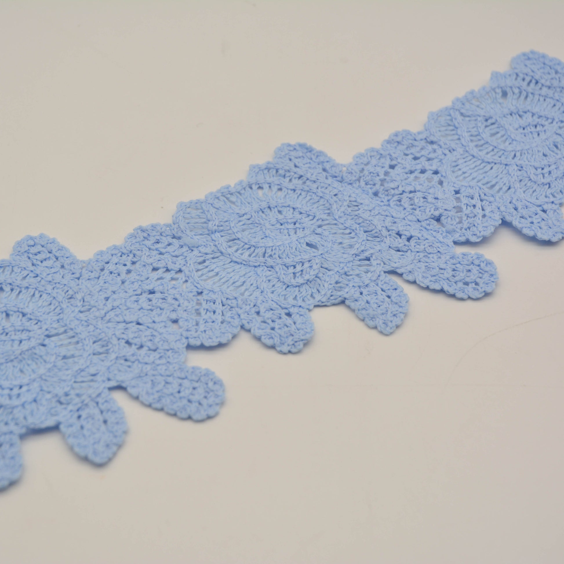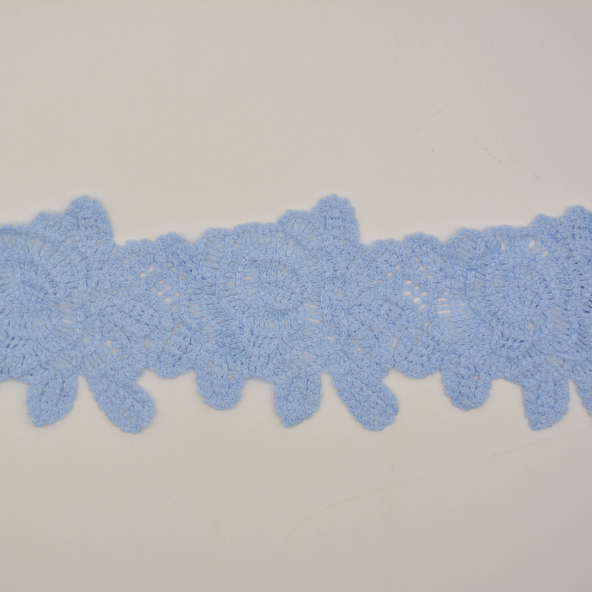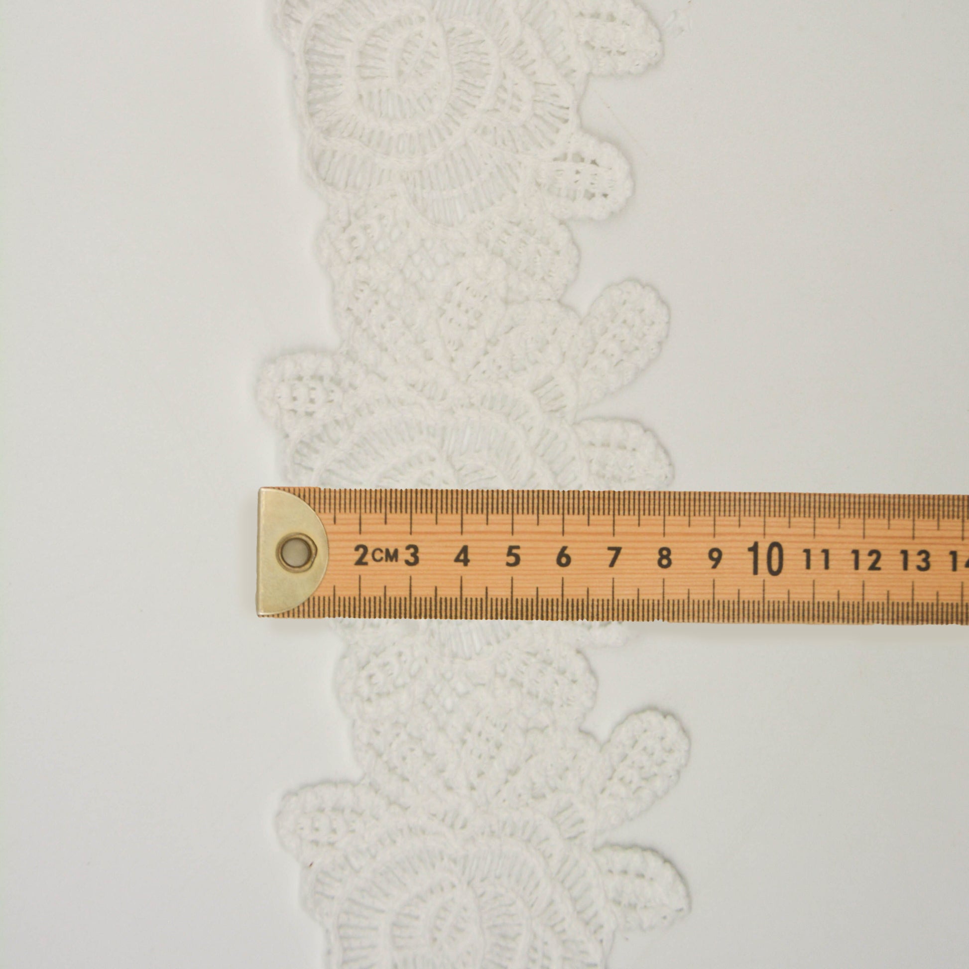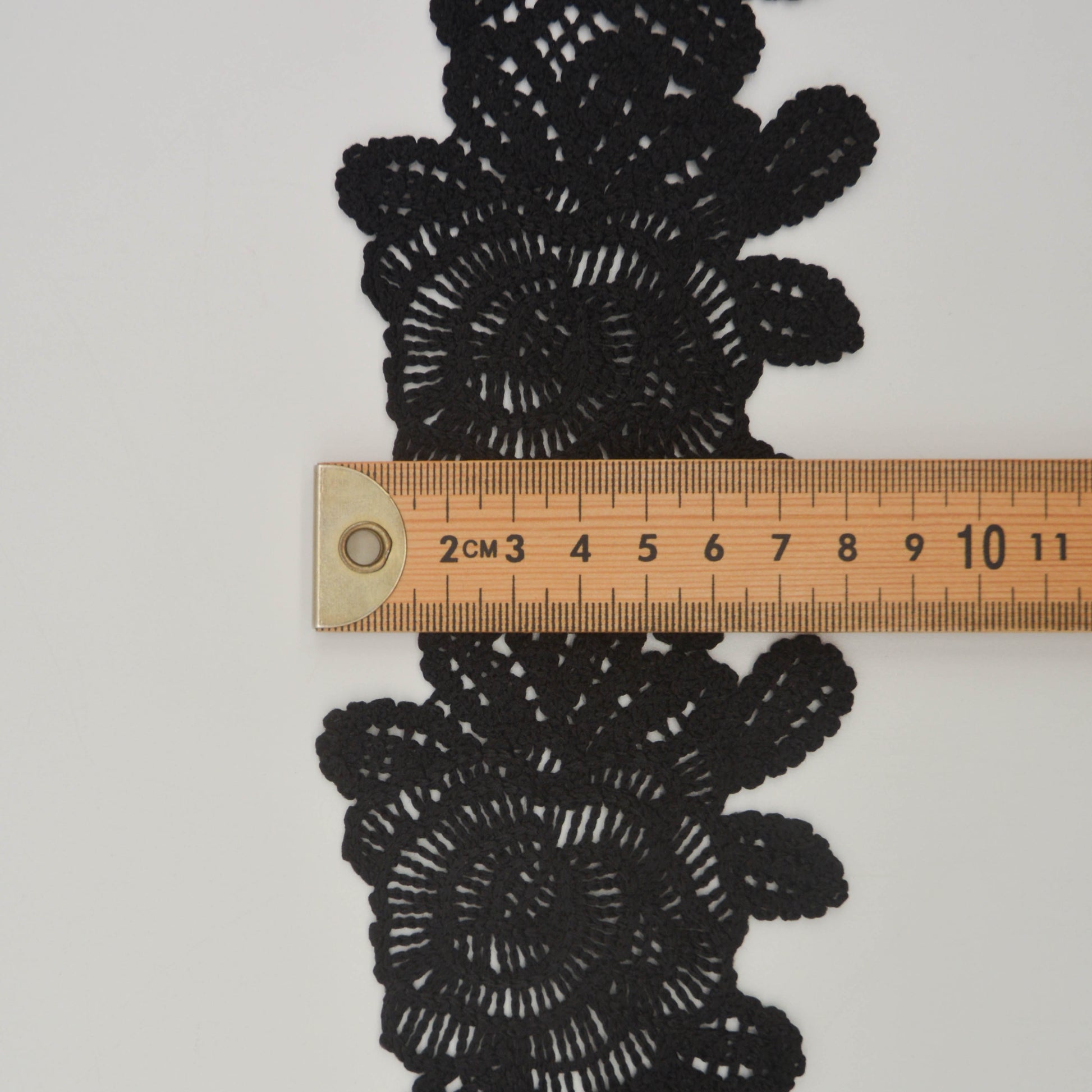 Large rose pattern in a heavy crochet style lace trim, in black, white, yellow or blue.