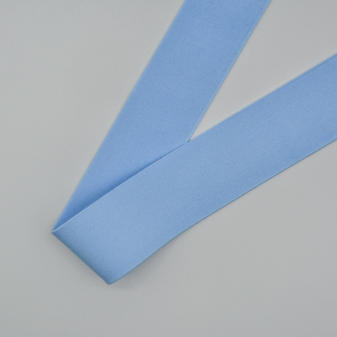 A soft yet sturdy elastic in navy, pale blue, brown, red and olive.